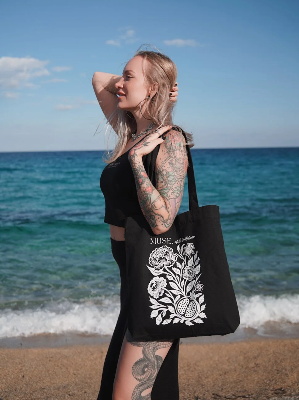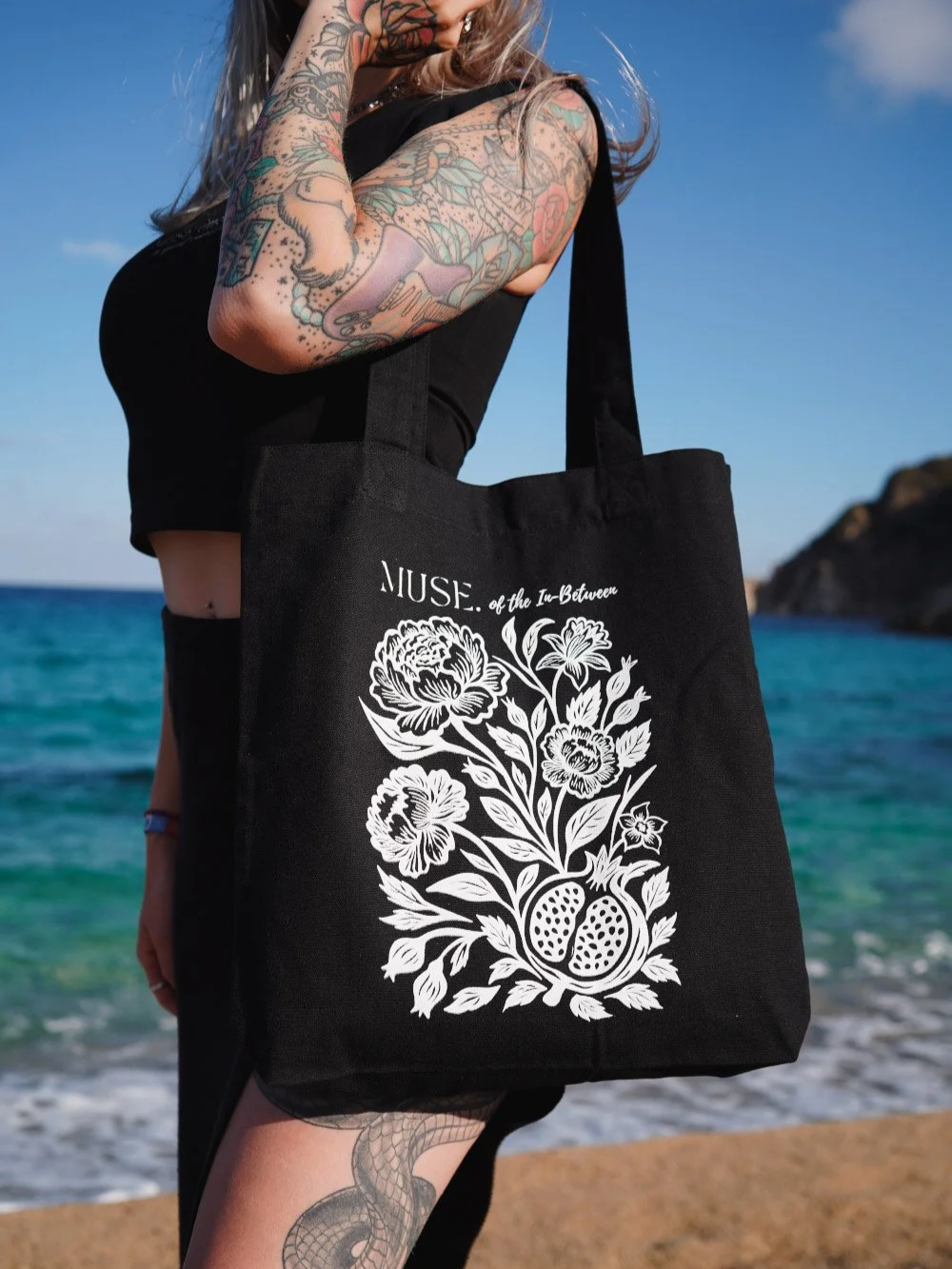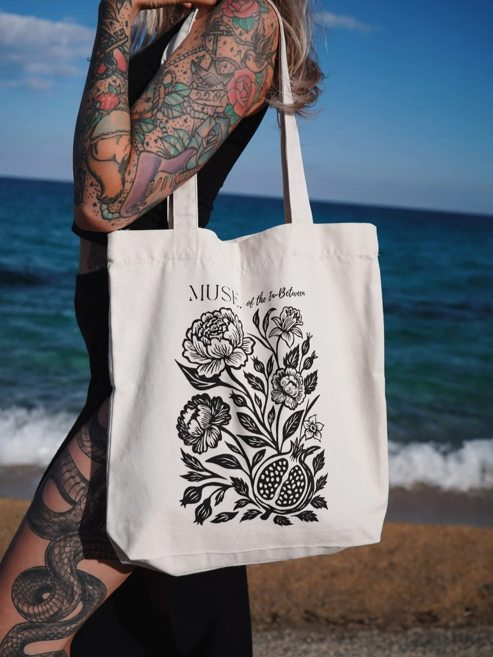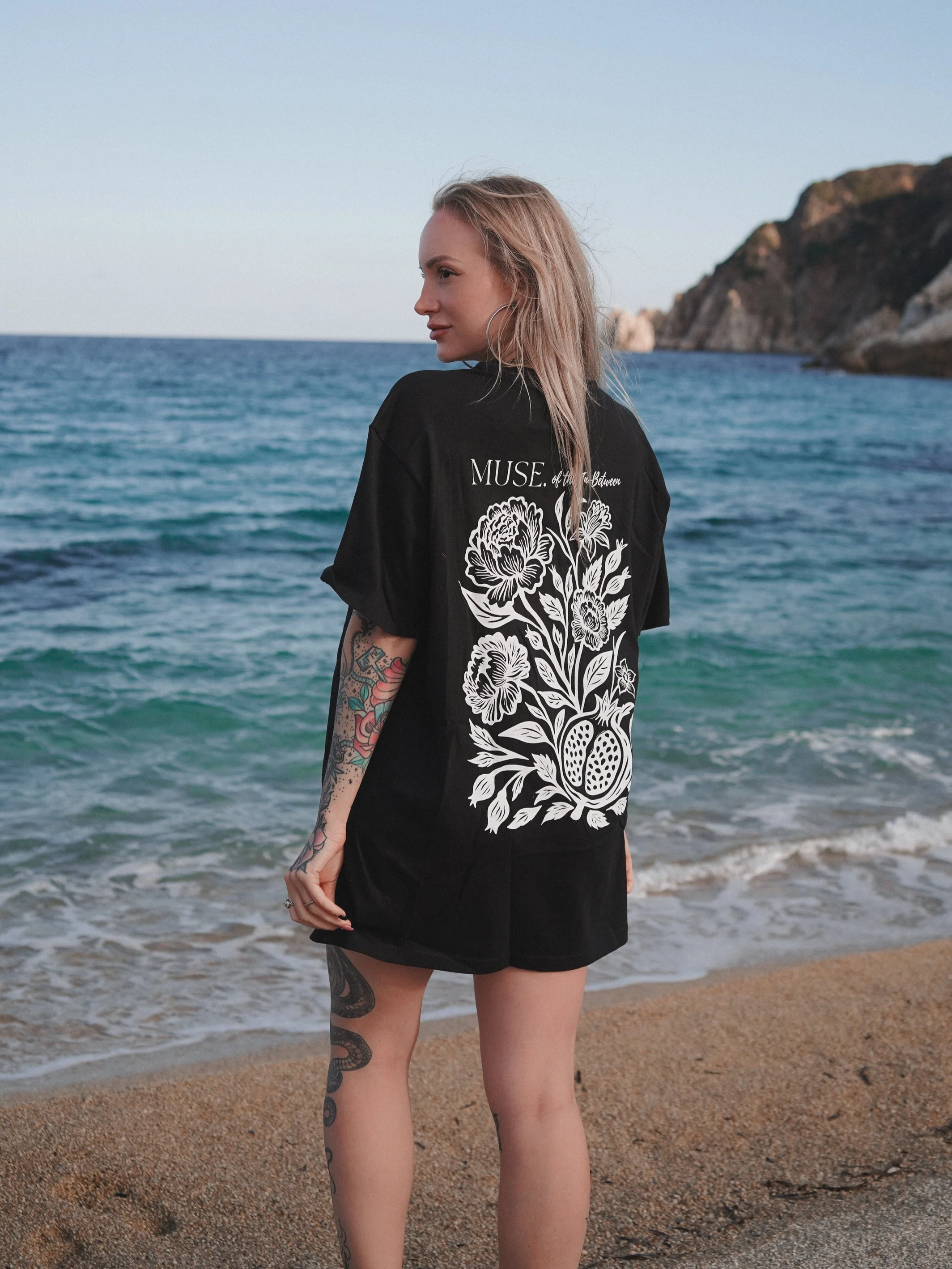 The oversized Muse of the In-Between Shirt features a bold hand-printed botanical back design and a subtle front logo - a symbol of growth, transformation and creative rebellion.